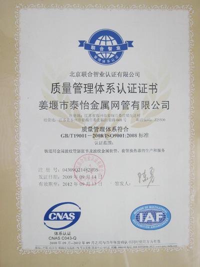 版权所有:泰州市泰怡金属网管有限公司 技术支持:
